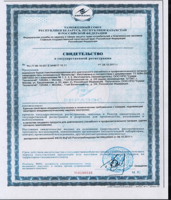 Витальгар – натуральный пищевой продукт, выпускающийся в виде геля. Производится из бурых морских водорослей Ламинарии.